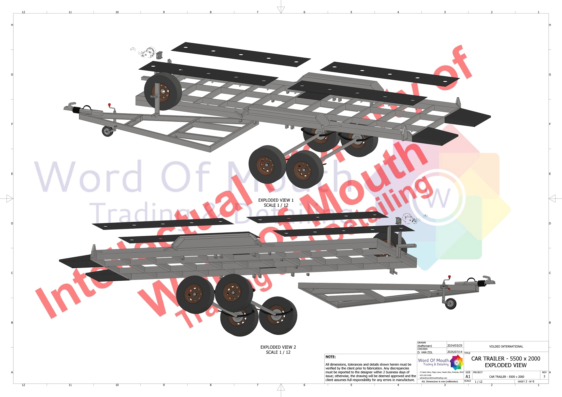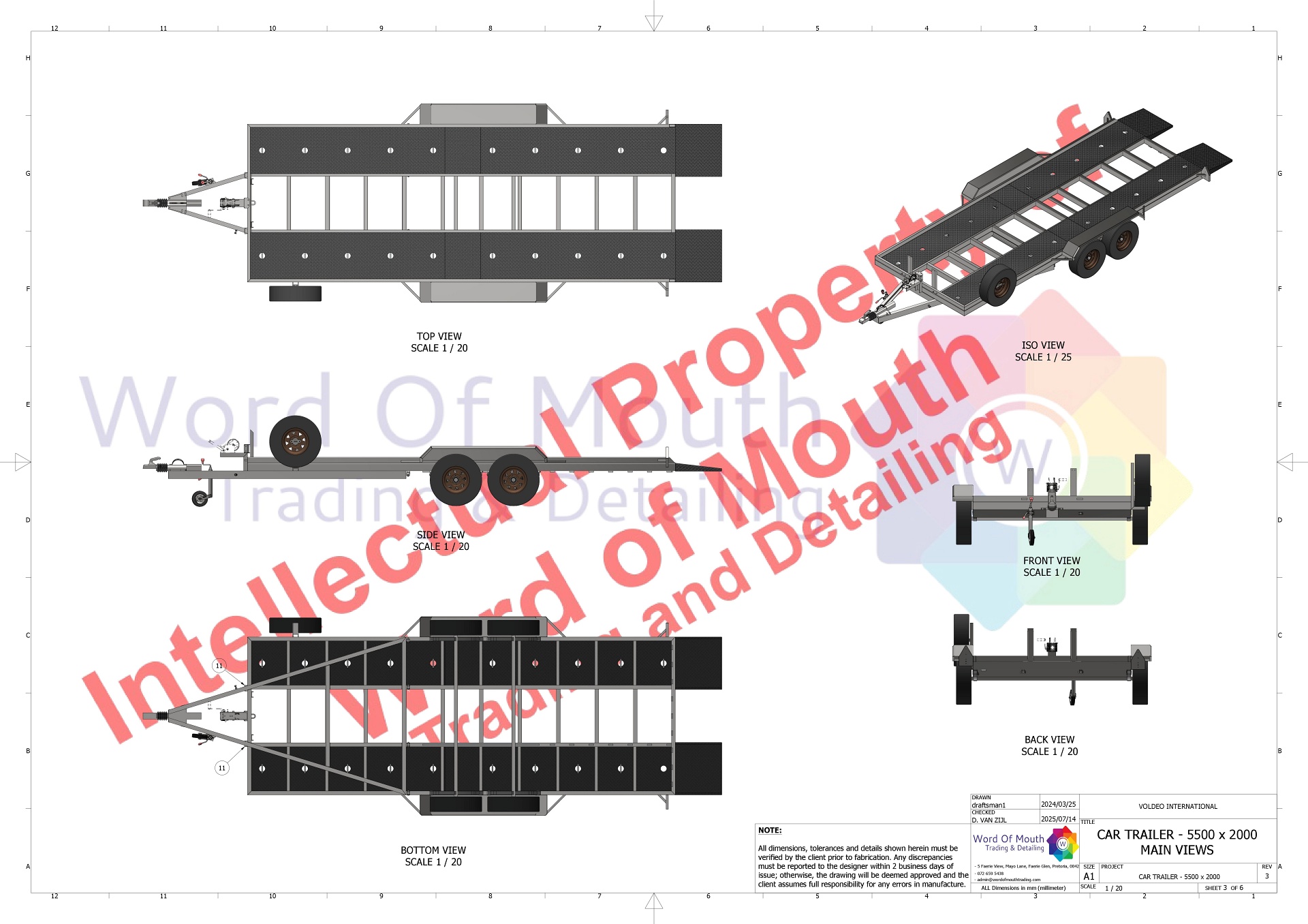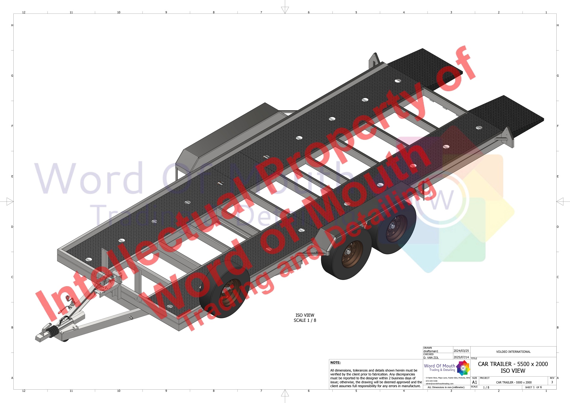 Word of Mouth Trading was commissioned to fully draught a heavy duty car trailer (5.5m x 2m) to the client’s exacting specifications. Our scope included: