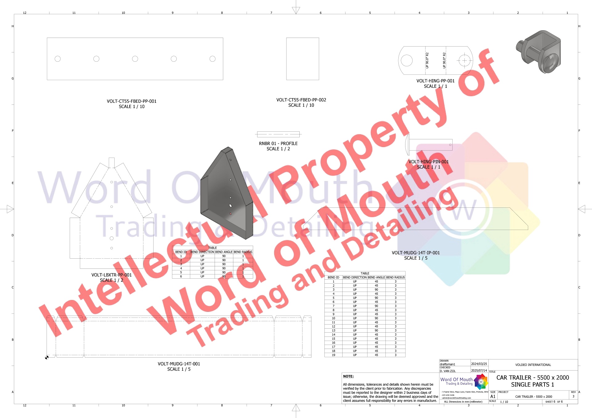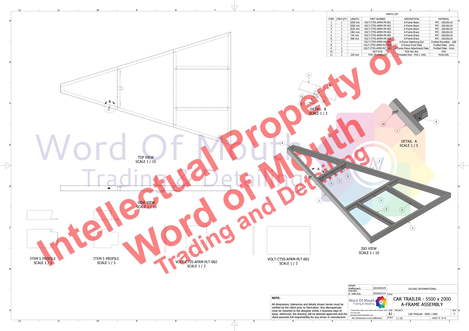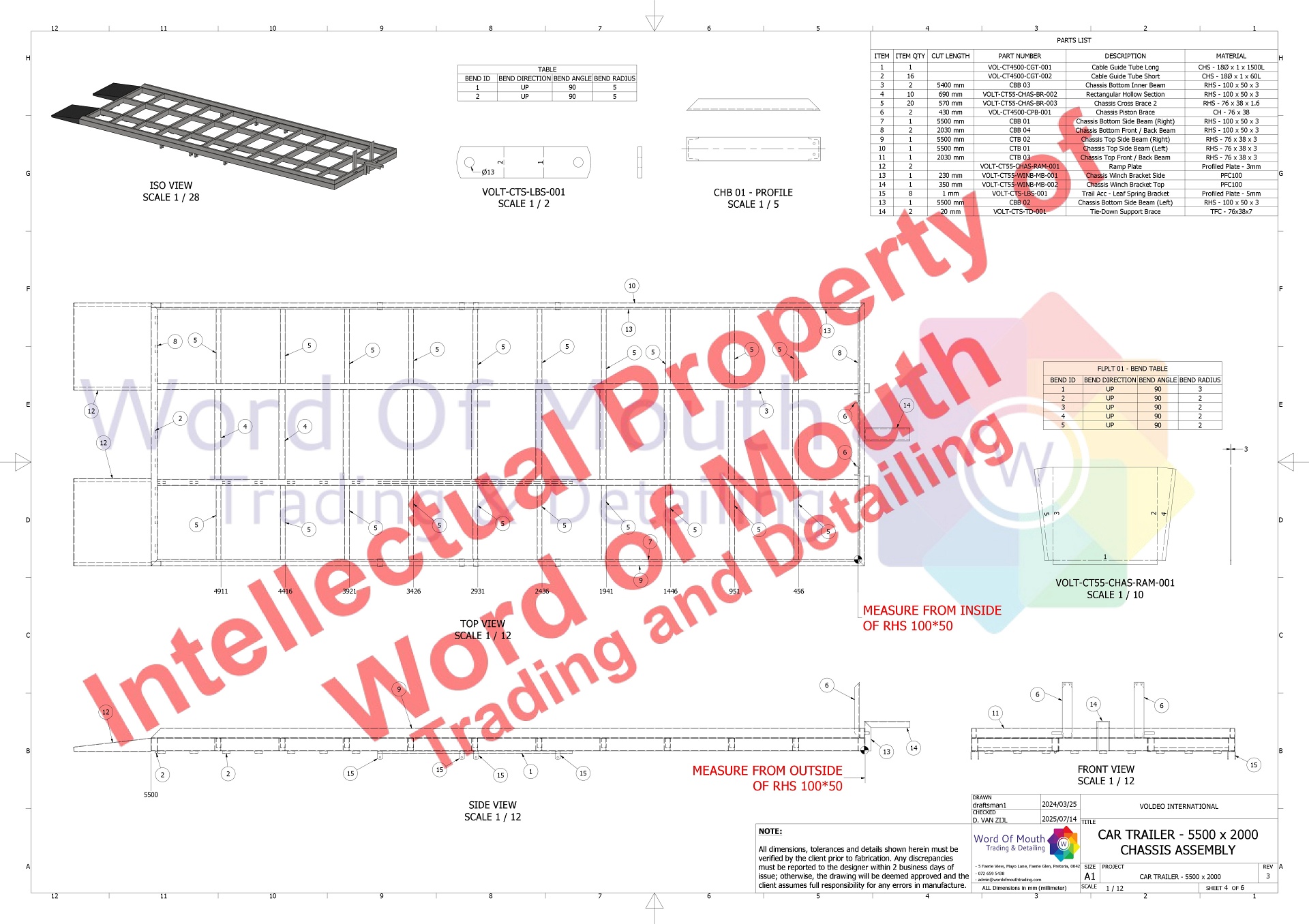 Word of Mouth Trading was commissioned to fully draught a heavy duty car trailer (5.5m x 2m) to the client’s exacting specifications. Our scope included: