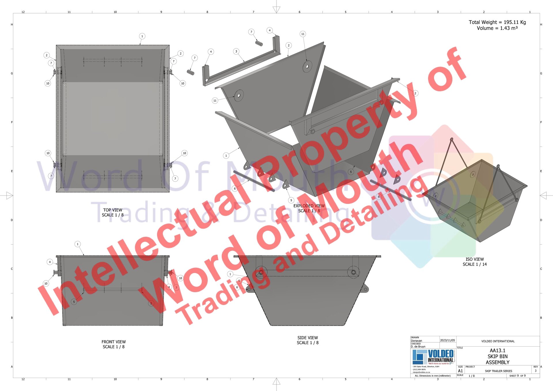 - Defining a parametric 3D CAD model of the 1.52m³ bin and twin axle chassis